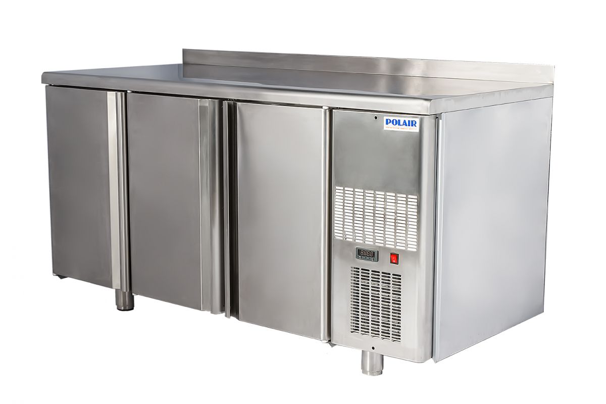 Холодильный стол с бортом, -2..+10С, 3 двери, корпус из нержавеющей стали, объем 400л, динамическое охлаждение, автоматическая оттайка, температура окружающей среды +12…+43, R134a 1628х605х850(910) мм