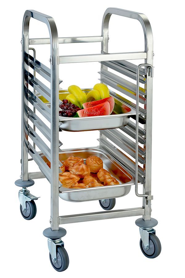 Тележка VIATTO RT1106 используется для транспортировки продуктов, полуфабрикатов и готовых блюд в гастроемкостях. Изготовлена из нержавеющей стали. Установлена на 4 колесах, 2 - с тормозом.